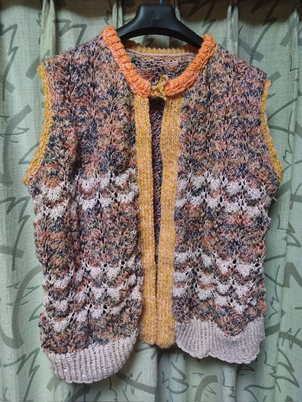 街にでかけると、歩いている人の服の編み方が気になるようで、どんな編み方になっているか研究するとか。